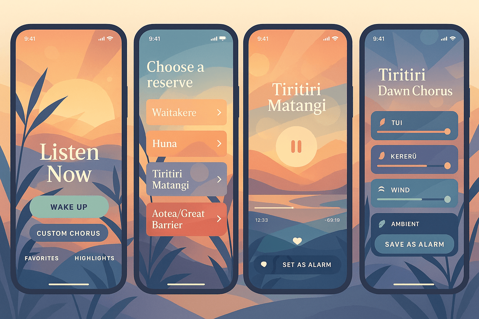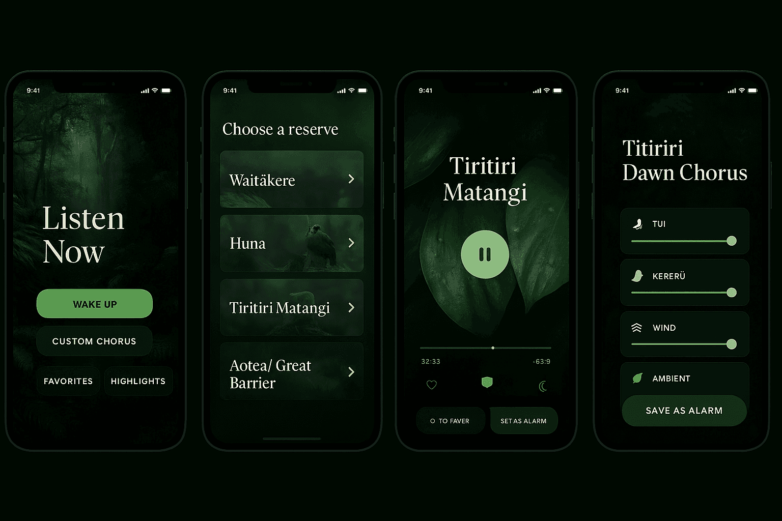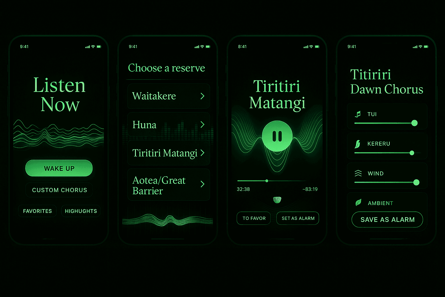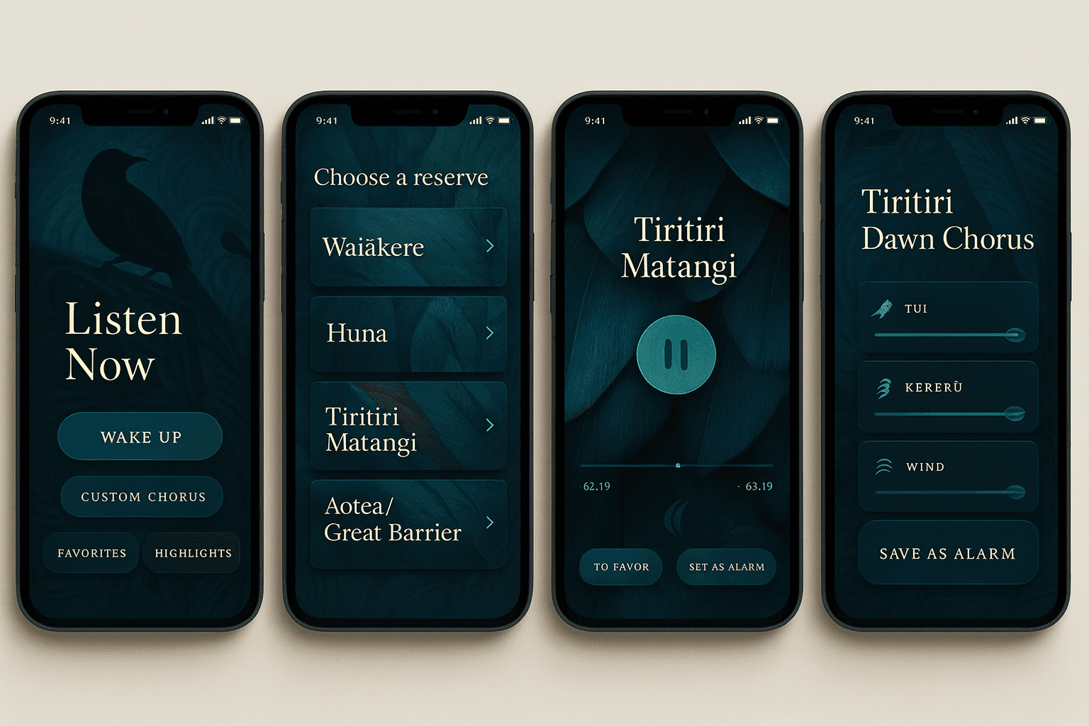 The most requested feature from user testing. Users can listen to live audio feeds from New Zealand nature sanctuaries in real-time.