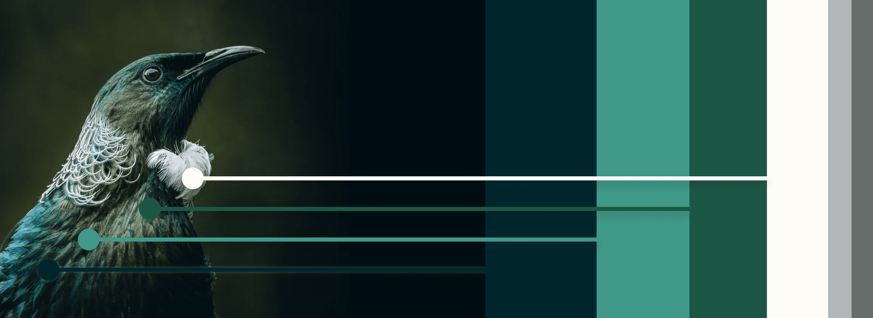 The color palette drew from the Tūī's iridescent blue-green plumage, a bird that bridges urban and native environments, making it symbolically perfect.
