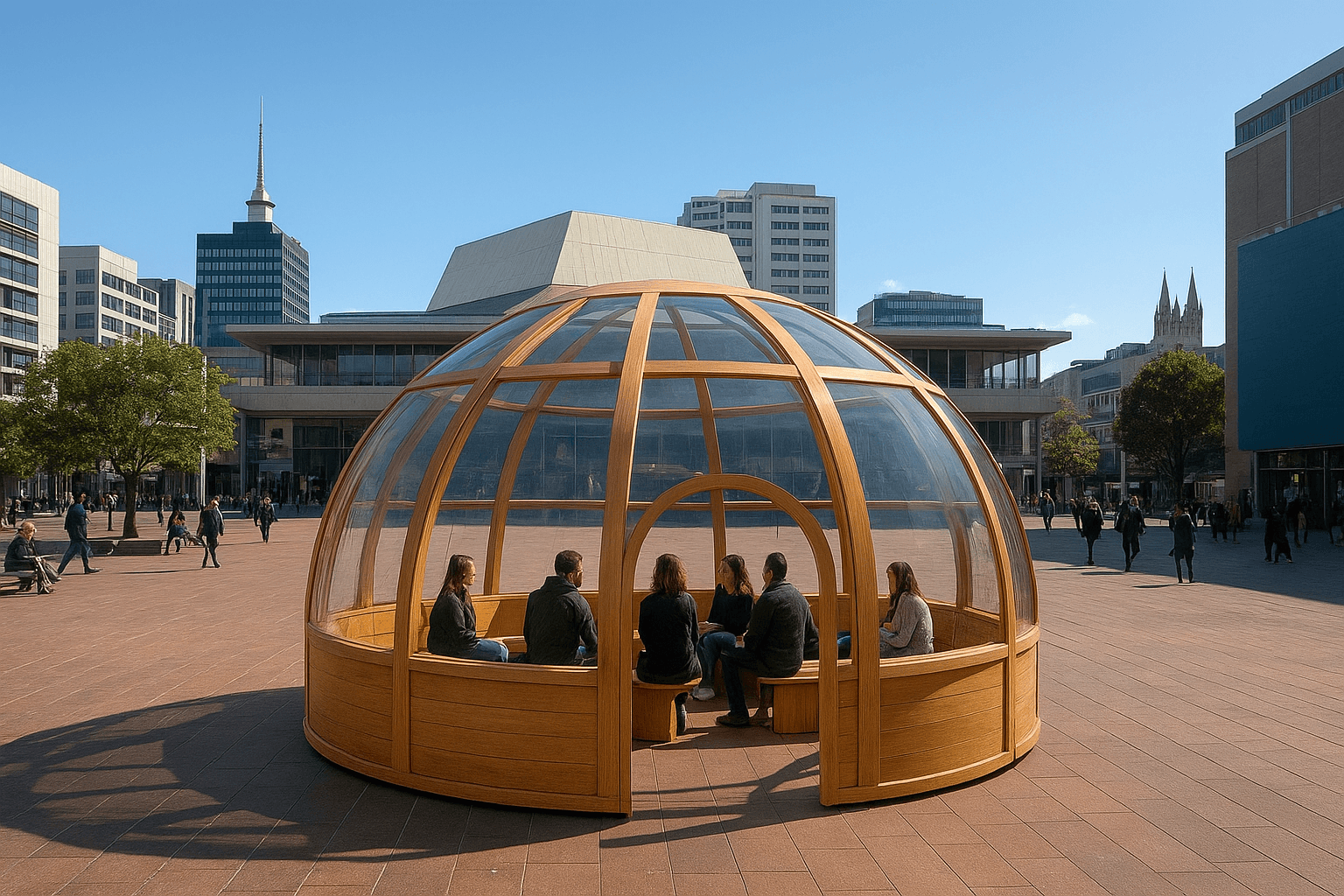 The dome would sit in Aotea Square for a month each July, timed after the winter ice rink, when fewer birds are active in the city, making the contrast more striking.