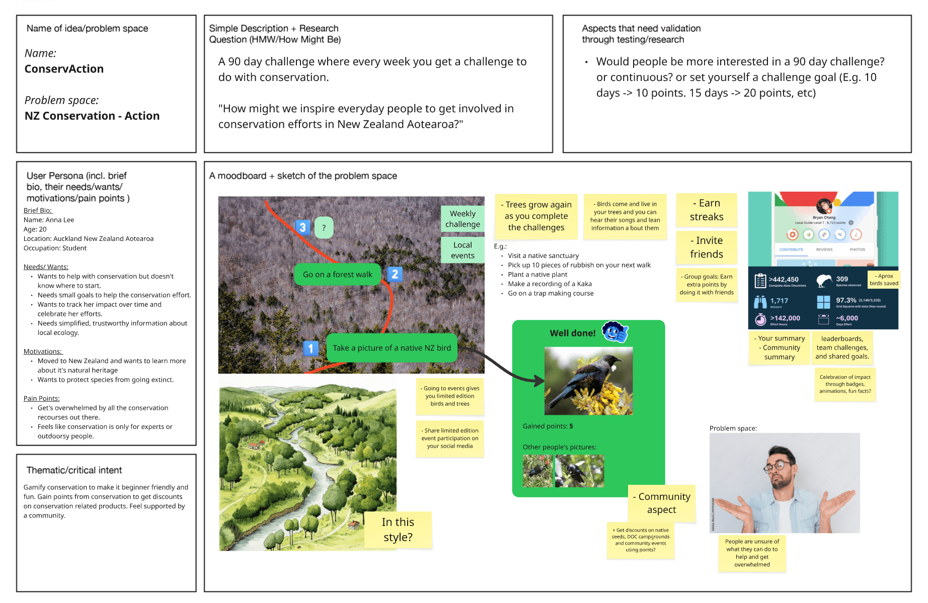 I created a persona based on my research and interviews to represent my target audience: young urban professionals who value nature but are time-poor and disconnected from daily contact with native species.