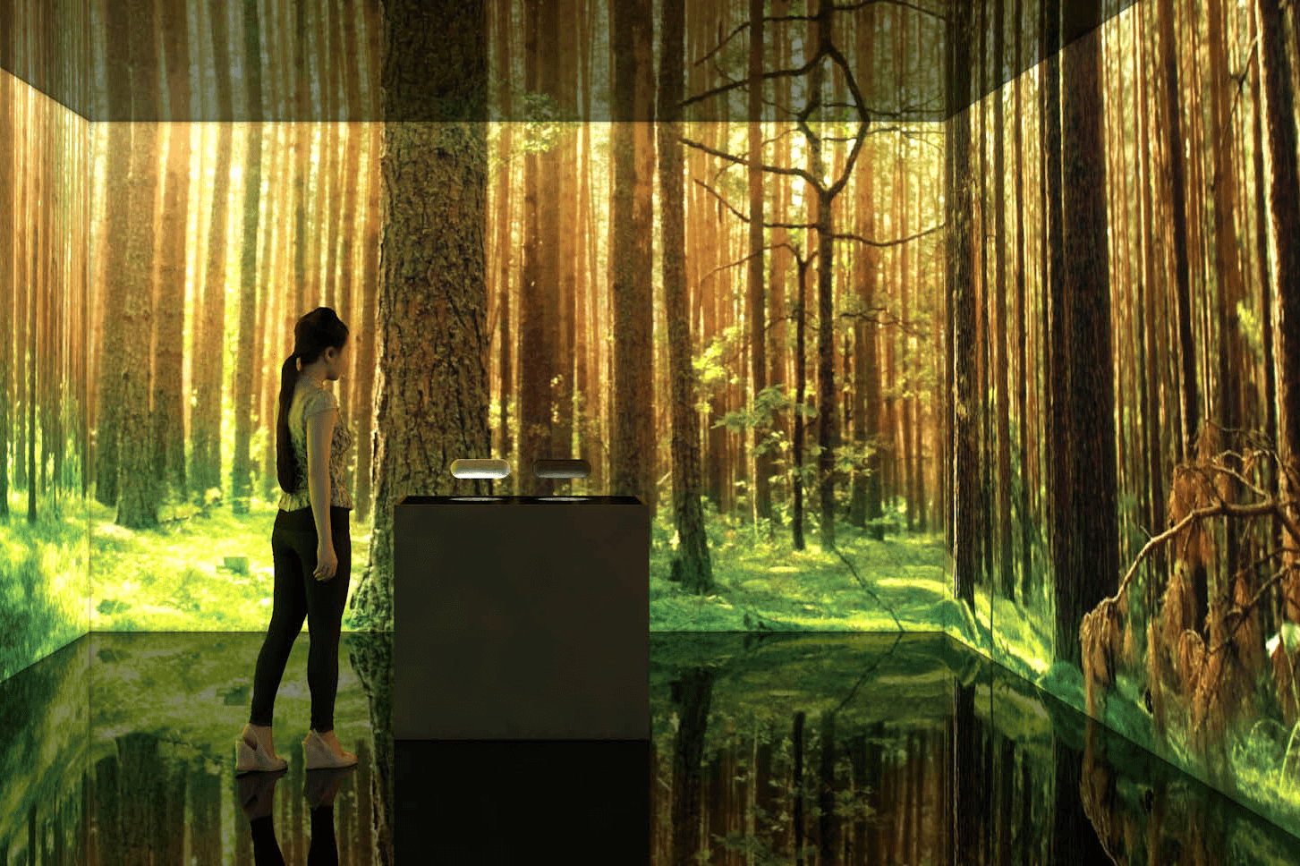 Users preferred the abstract light installation (Option C). They didn't want literal forest or bird projections, they wanted something meditative that supported the audio without competing for attention.