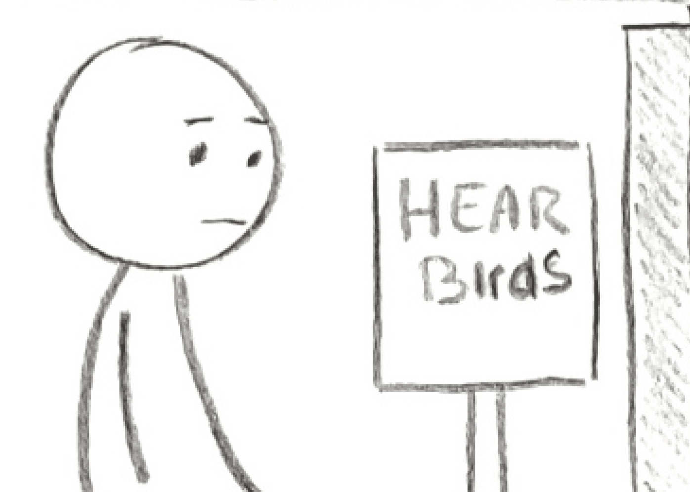 She sees dome with a sign outside saying “Live birdsong” and gets curious