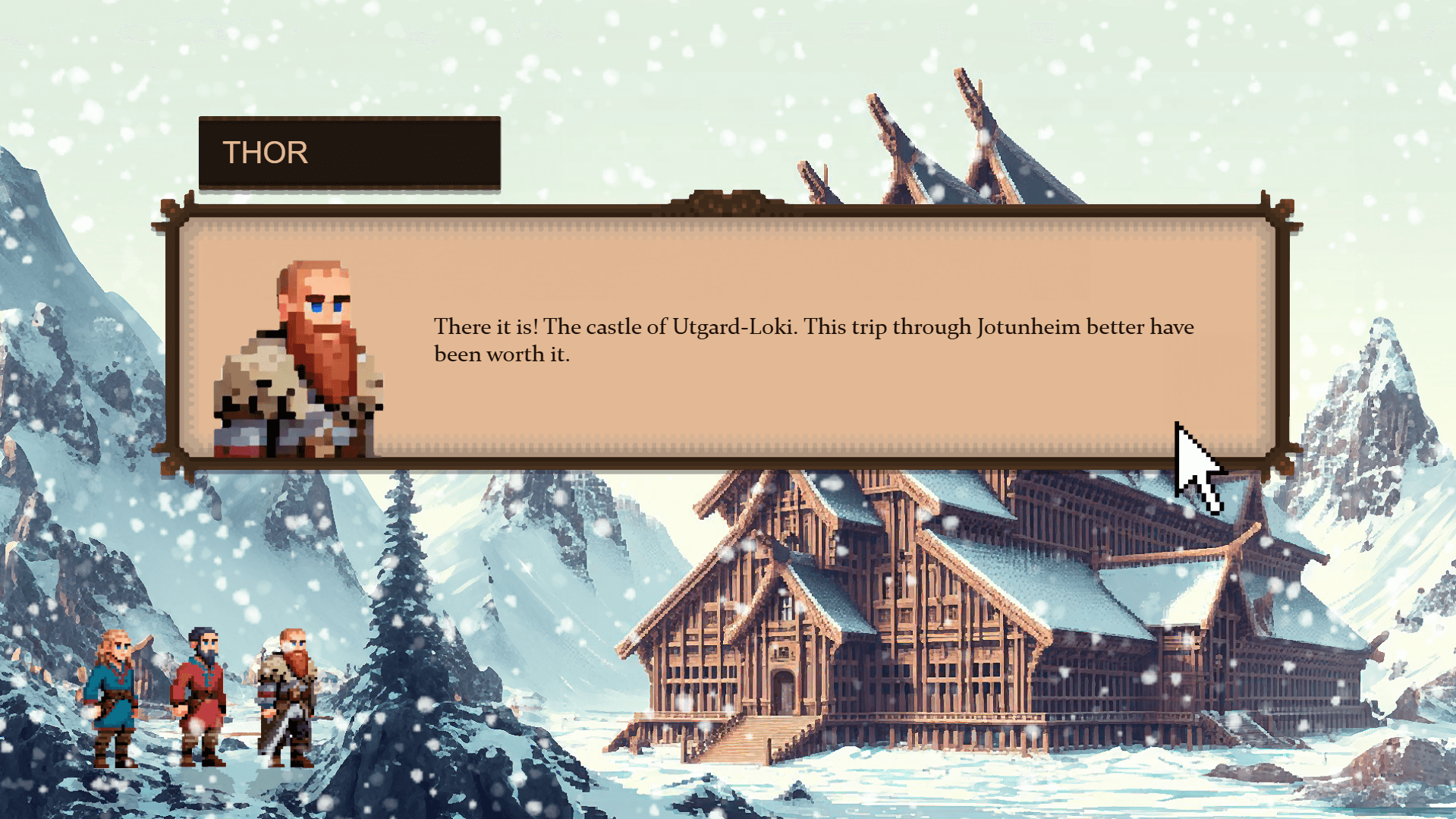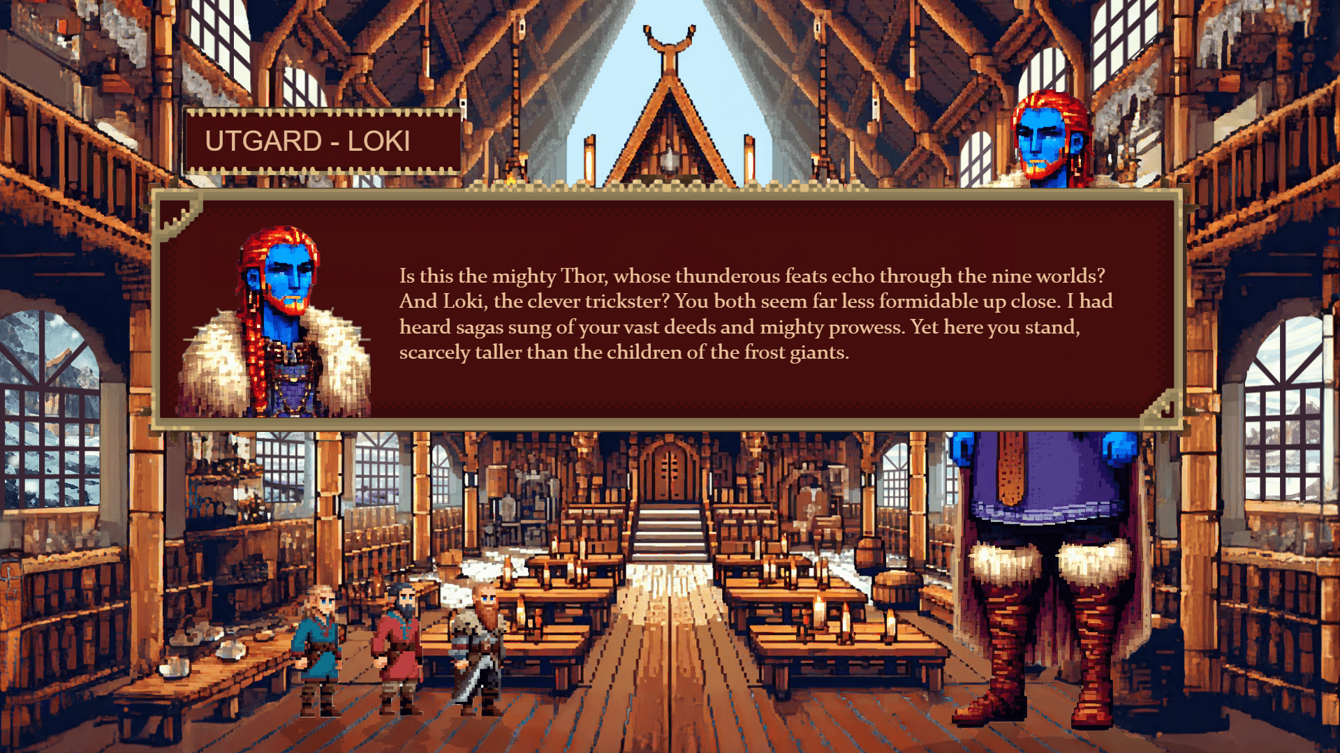 An interactive gamification website retelling the Norse myth of Utgarda-Loki for young adults. Using historically accurate research, pixel art visuals, and user-centred design methods, the project combines storytelling, education, and play. Built in Protopie, the hi-fi prototype allows users to explore dialogue, challenges, and hidden trickster elements, encouraging curiosity and engagement with Norse mythology.